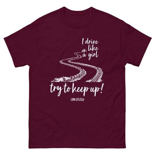 "I drive like a girl, try to keep up!" T-Shirt by COOKIESCRIB™ for SXS | Side by Side | UTV and Off-Road fans ©COOKIESCRIB™